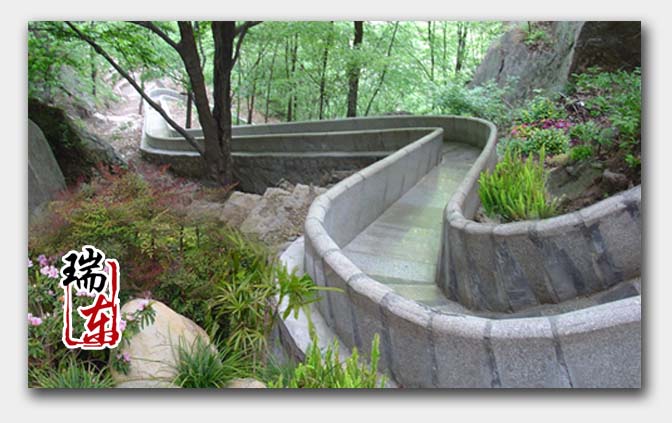 滑道是一種無載人工具滑道,靠重力自然下滑,速度由游客自己控制,安全好玩!是自然景區中一種新型的娛樂與代步為一體的參與性娛樂設施!它是以拋光的花崗巖石為主要材料,依山體坡度修建而成的巨型凹槽。既是老少皆宜的娛樂設施,又是充滿童趣的代步工具。