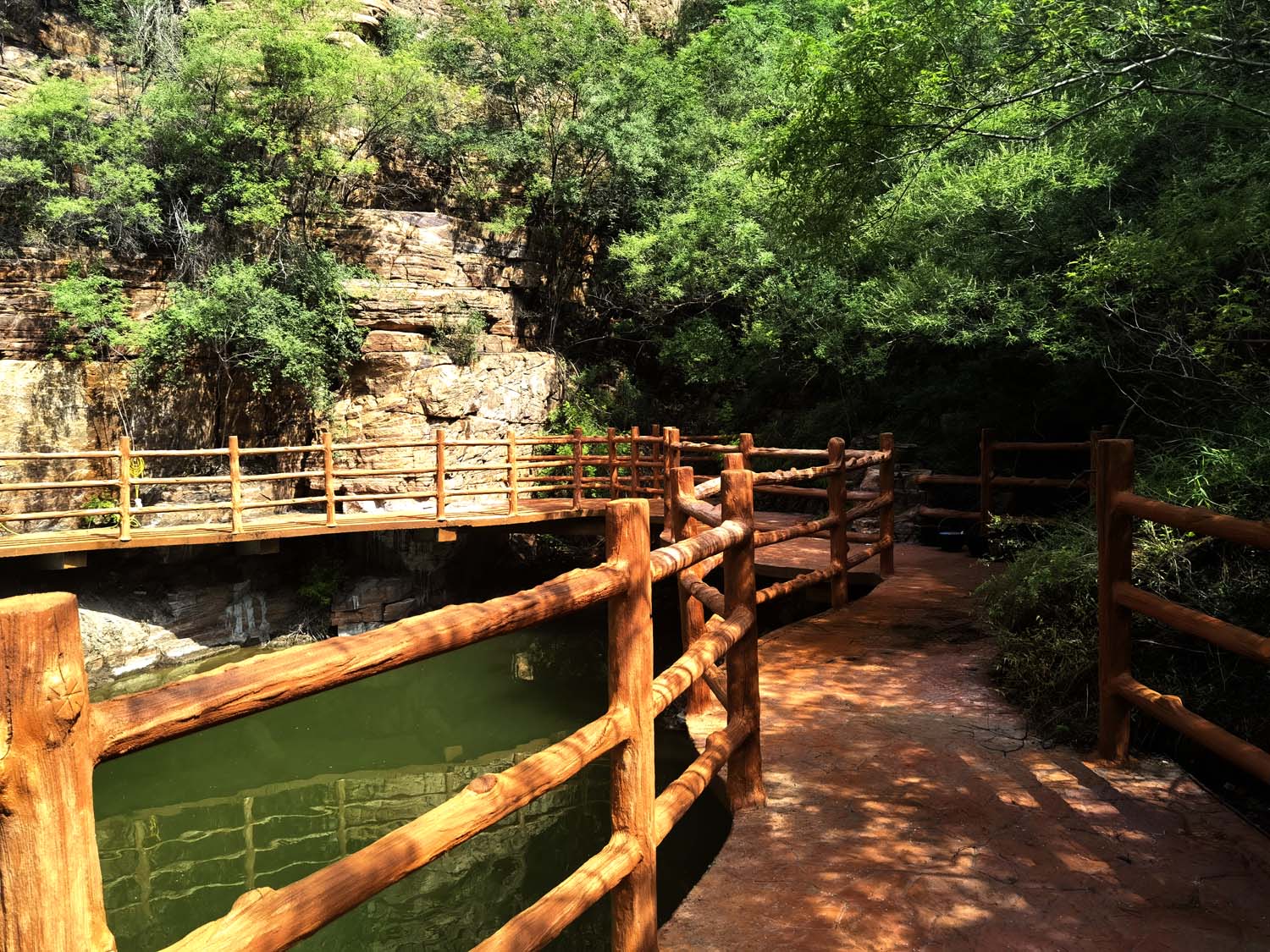 孔莊大峽谷景區(qū)棧道工程全長1230米,工期2.5個(gè)月。懸挑結(jié)構(gòu),單邊護(hù)欄,寬1.5米。護(hù)欄仿生處理。